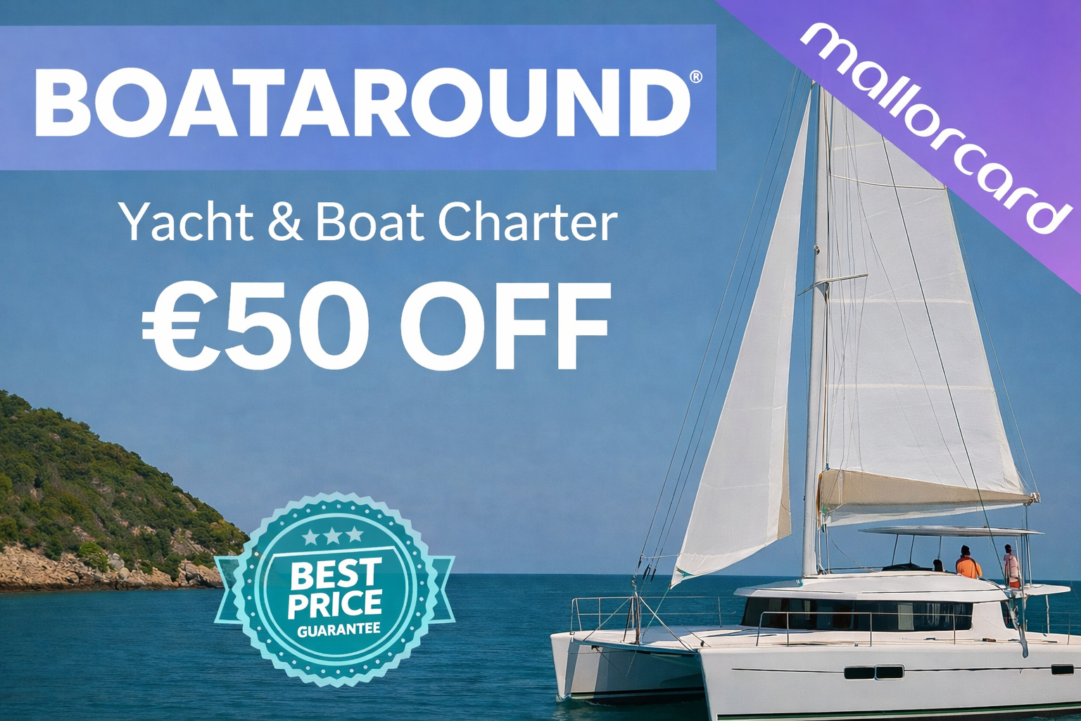 Mallorcard unlocks an exclusive 50 € discount on Boataround bookings worldwide when you use the Boataround promo code displayed on mallorcard.es. The Boataround promo code can be used for: