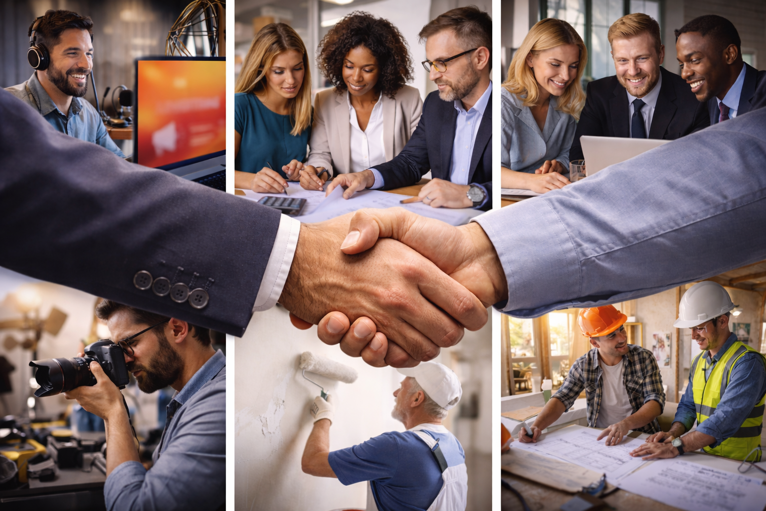 In this category you will find practical services such as gardeners, painters, cleaning services, handymen, renovation and construction teams, as well as ongoing property maintenance and repair services. In addition, it includes business-focused services like radio advertising, marketing and media partnerships, photography and video production, branding, consulting, tax and financial services, and investor-related support.