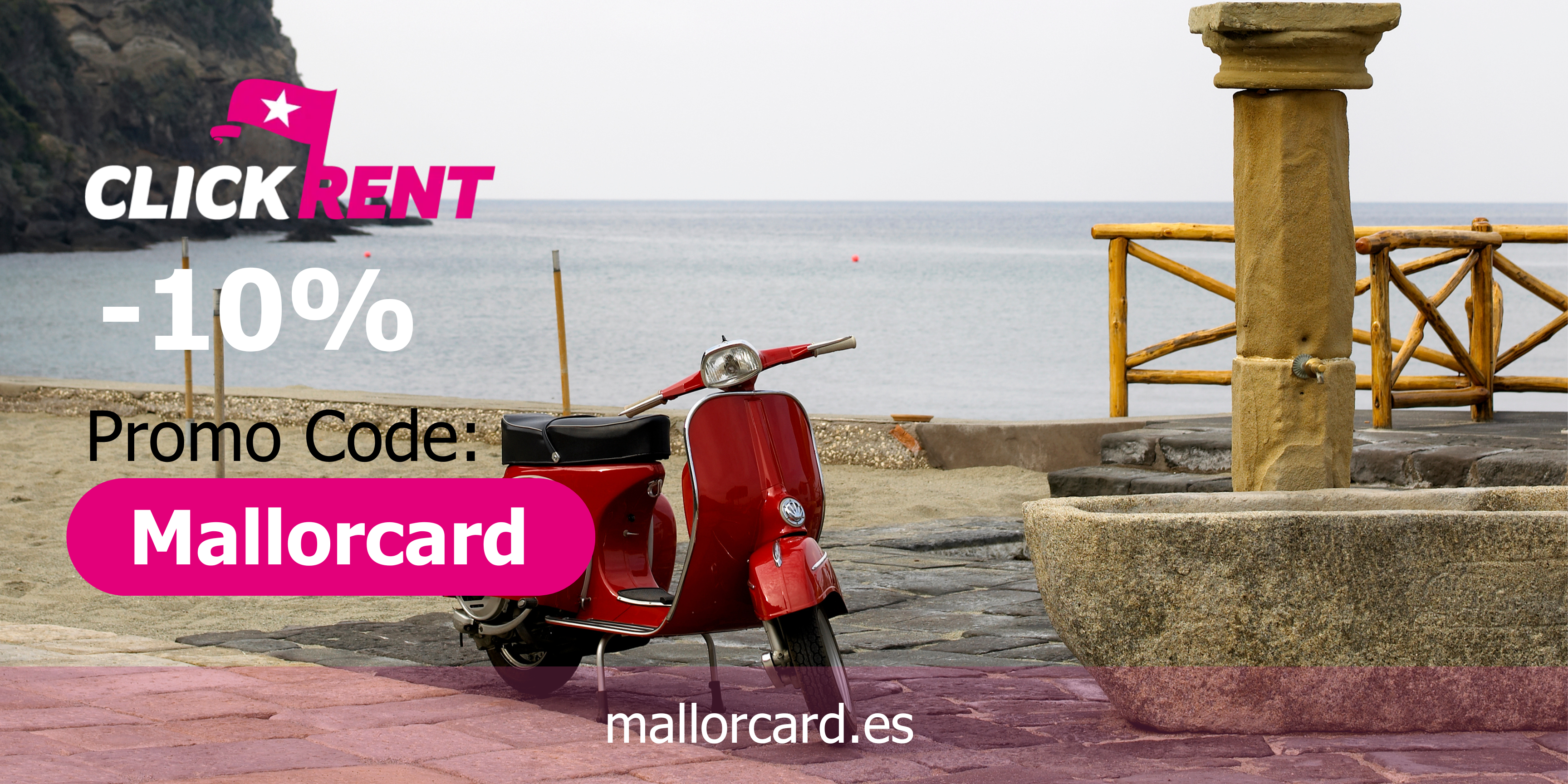For motorbike and scooter rentals, you also use the latest Click Rent promo code shown on Mallorcard. Since these codes are updated, you should not rely on old ones; instead, check mallorcard.es, copy the current code, and you can save minimum 10%, with possible up to around 50% savings in combination with Click Rent campaigns.